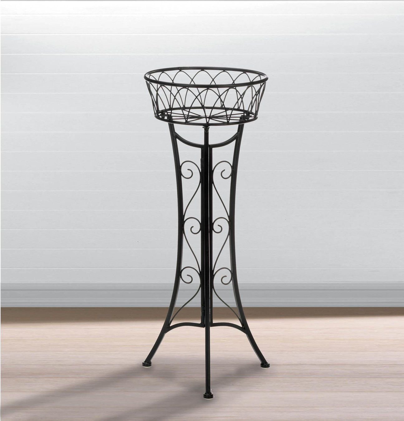 Display your thriving house plant or fresh floral arrangement on our elegant yet simple plant stand. It's an easy and attractive way to decorate patios, decks and home interiors with plants, flowers and greenery alike. Weight 3.2 pounds. 10.8" x 10.8" x 26.5". Iron. UPC Number: 849179040383.