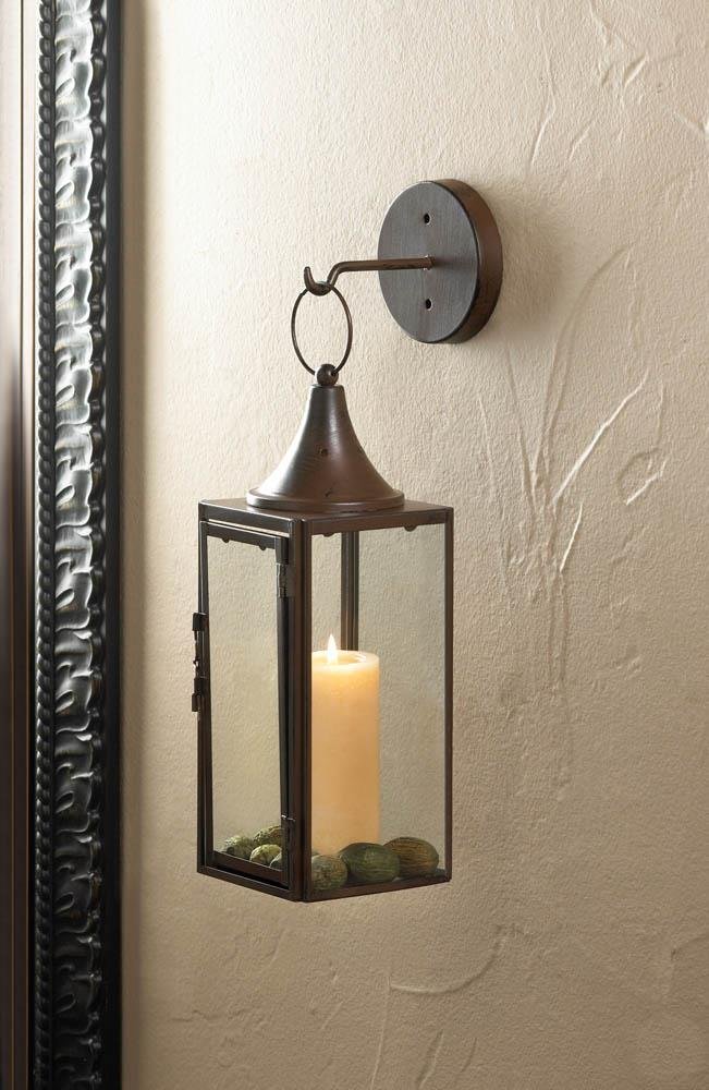 • This hook and hanging candle lantern combo is fluent in the language of fantastic style. It's made from iron and glass and features a burnished finish along with classic geometric design.