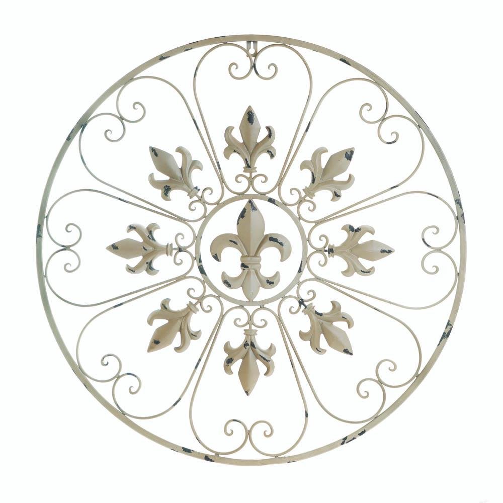 Round Fleur De Lis Wall Art Decor - Elegant Circular Metal Wall Hanging Round Fleur De Lis Wall Art Decor - Elegant Circular Metal Wall Hanging