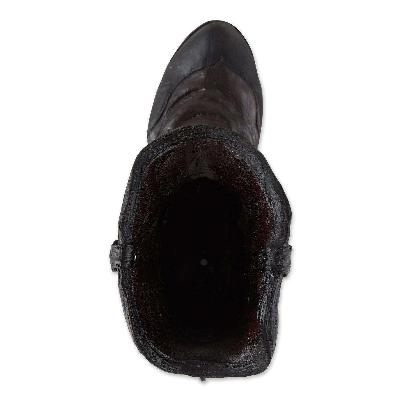 • Let your favorite flowers or plant saddle up in this charming cowboy boot planter. This planter has plenty of Western flair and looks like a well-worn and weathered boot, complete with a spur on the back.